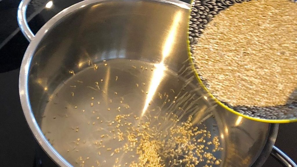 - Quinoa von wunderkorn mit kaltem Wasser waschen.